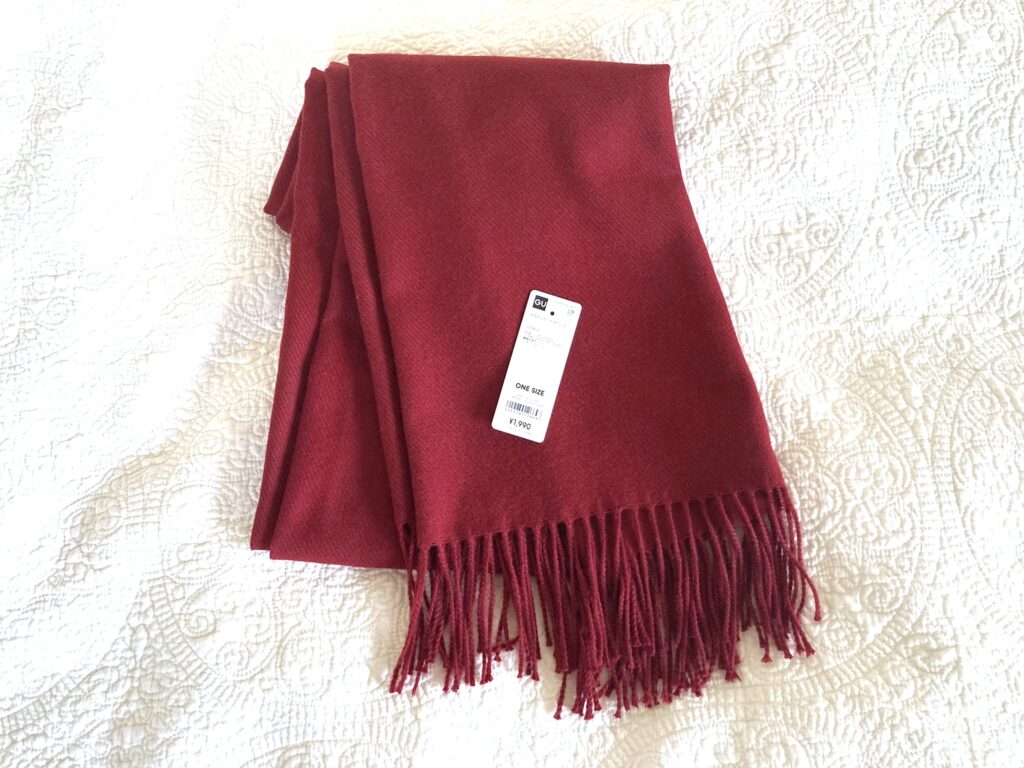 こちらのストールはGUで購入したスタイルヒートストールですが、深みのある「RED」が顔色に白さと透明感を与えてくれます(自分比)。