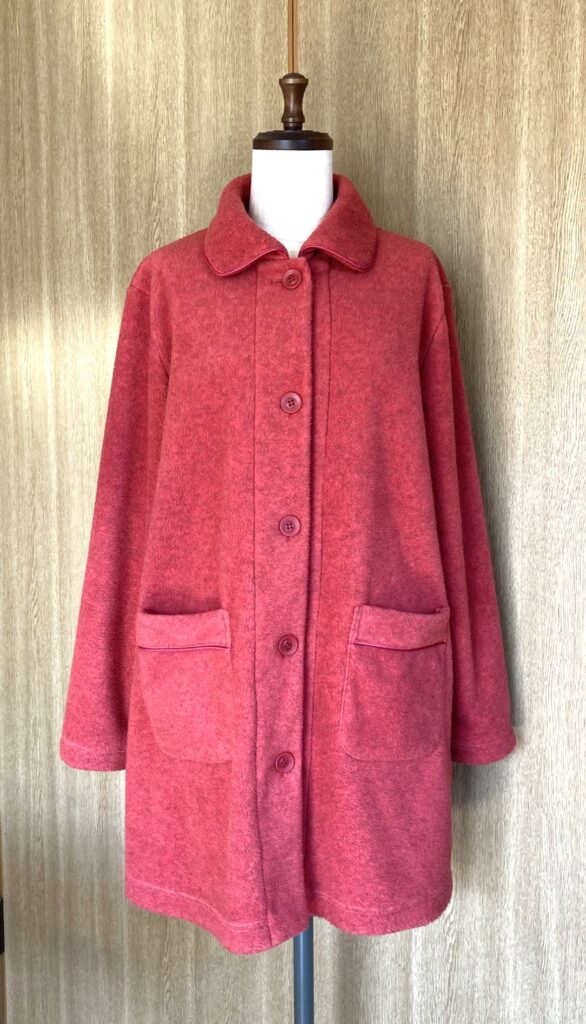 上質なフリース素材(ポリエステル70%、レーヨン30%)で衿のカッティングも立体的で美しいです。